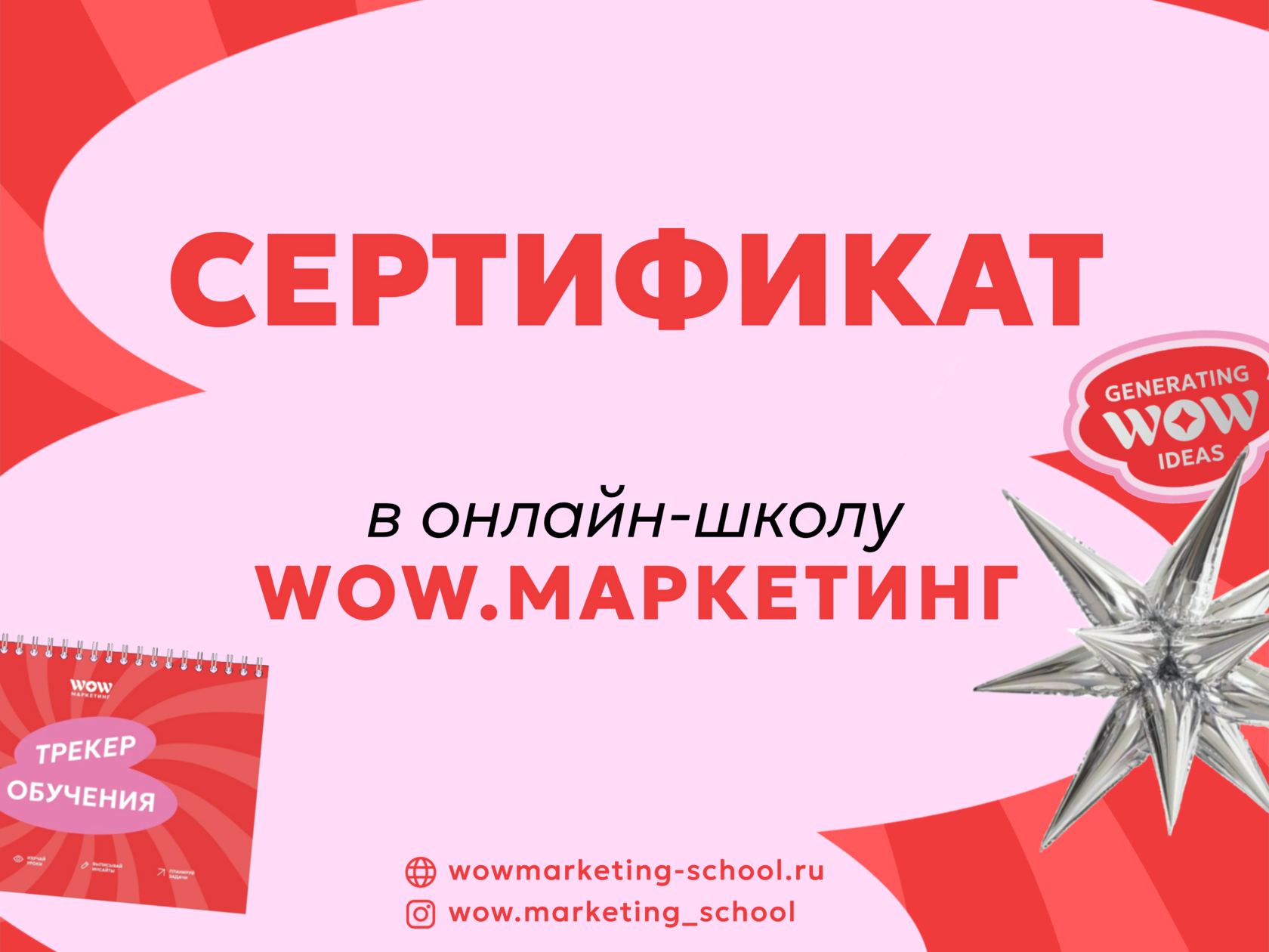 Сертификат действителен для покупки обучений в онлайн-школе WOW.Маркетинг на все направления в 2025 году.